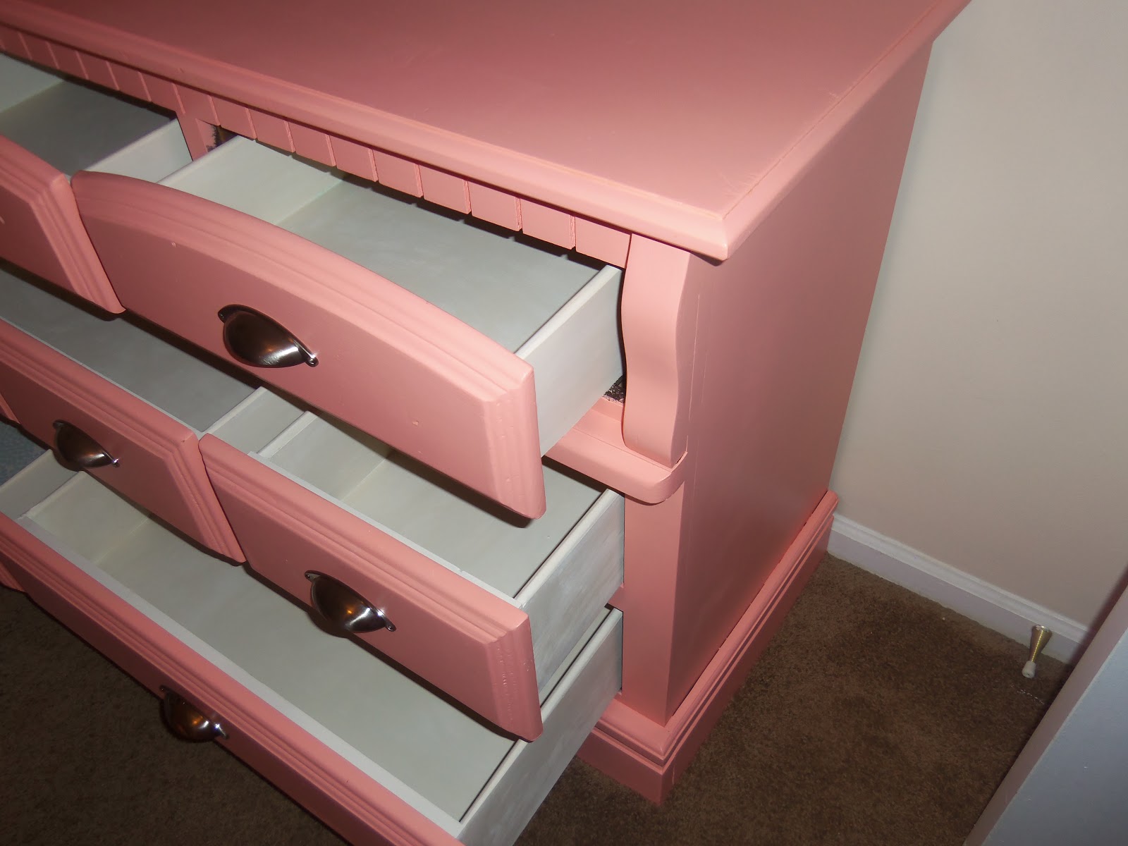 You already read about how I painted the dresser here, so I won't go into details. The actual color of the dresser is more accurate in the picture above. It looks really light in this one below.